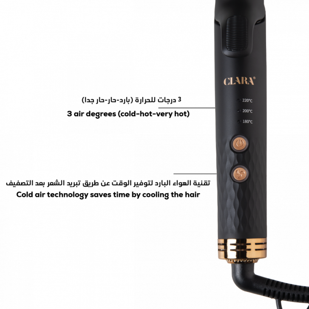 بتوفير أكثر من نتيجة: تمليس ولف الشعر بأقل الأضرار. مع ميزة الهواء البارد لتسريع عملية التصفيف والقضاء على الشعر المتطاير بخاصية الأيونات السالبة.