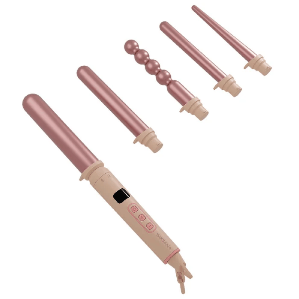 كيرلي برو من ويكسانا مكون من خمسة روؤس بمقاسات مختلفة لتحصلي على شكل مختلف ومميز كل يوم, حيث إنها تتميز بسهولة الفك والتركيب بكل سهولة.
